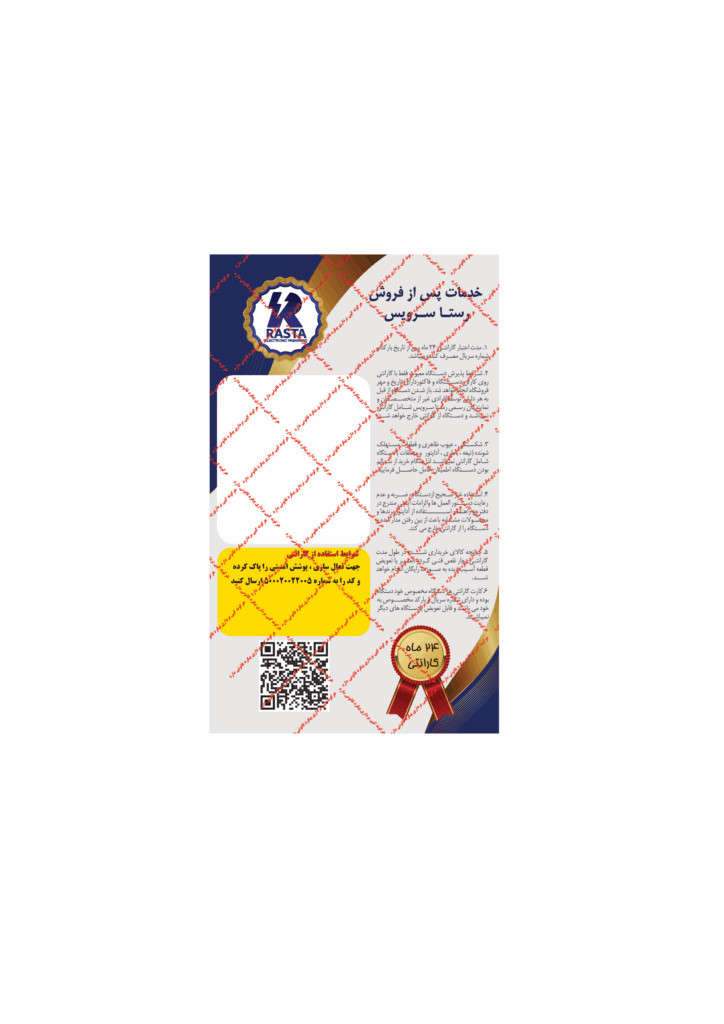 خدمات پس از فروش فقط در صورت دارا بودن کارت گارانتی معتبر و در بازه زمانی مشخص شده قابل انجام است.